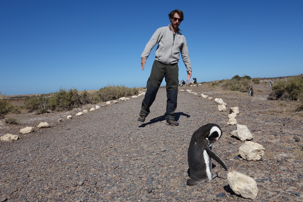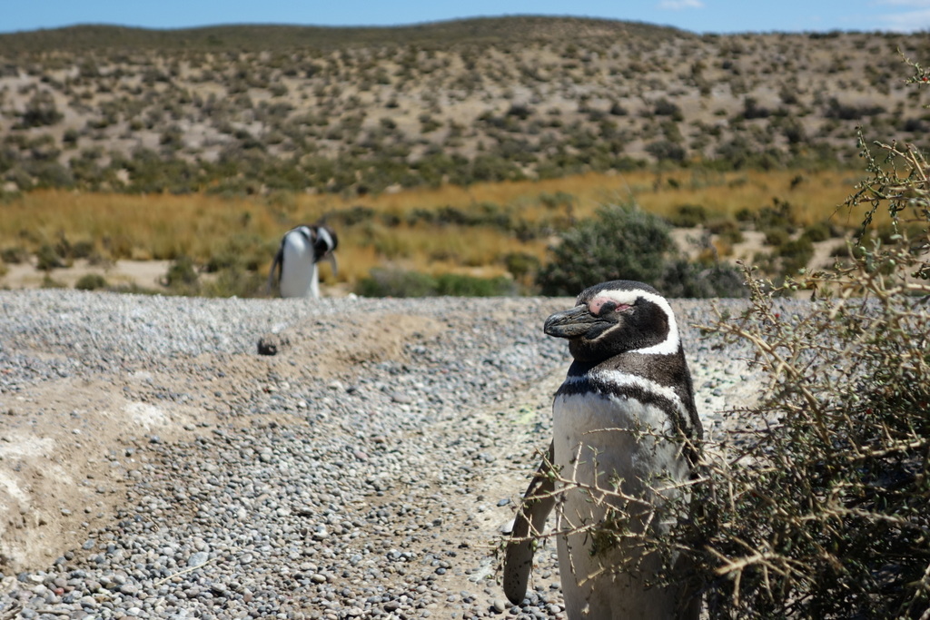 And now for something completely different! Ken and Ana in Punta Tombo, the largest penguin colony after Antarctica. Home to some 200,000 Magelaen Penguins, the little buggers come to bread here while they empty the sea up to 500 km outwards. In the winter they head north (it’s the other side of the world here, don’t forget) for 6000 km to Brasil .